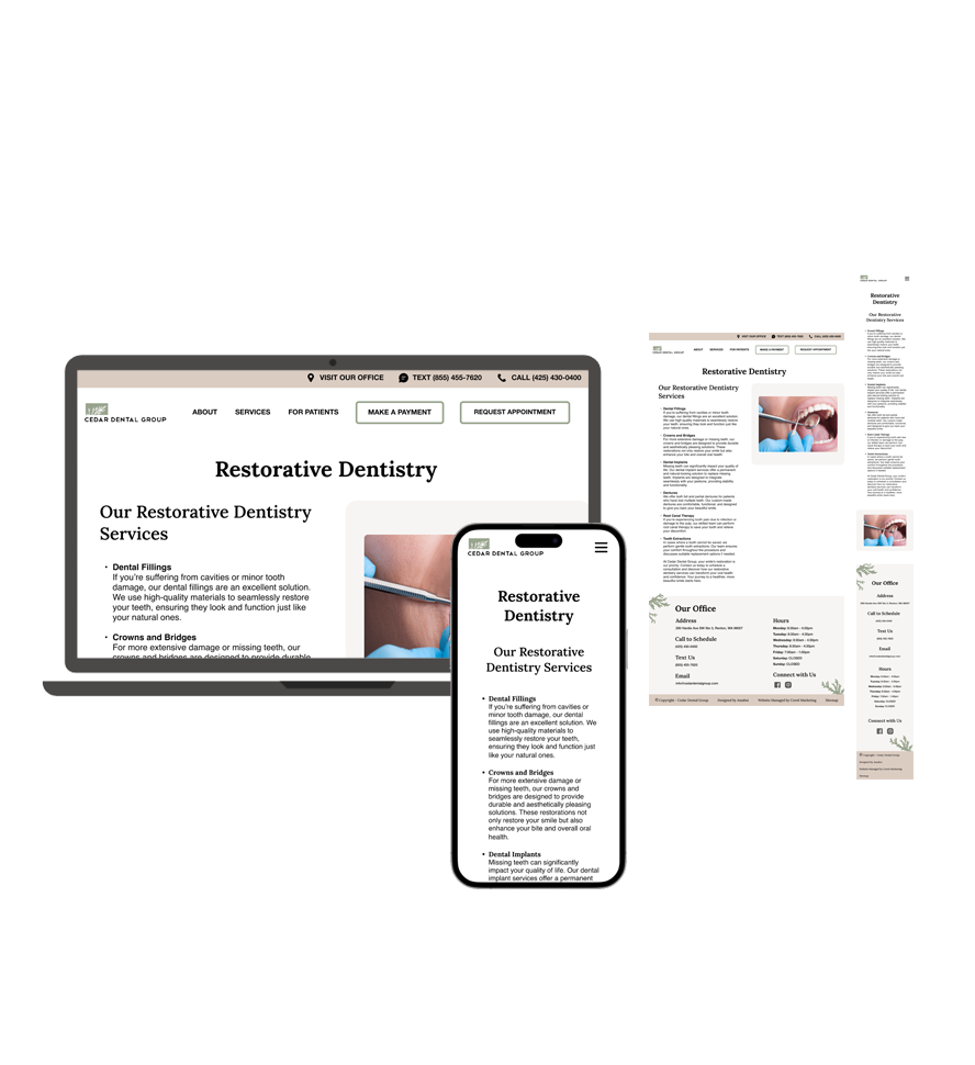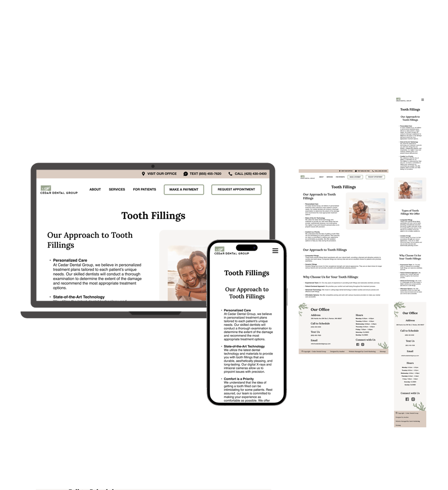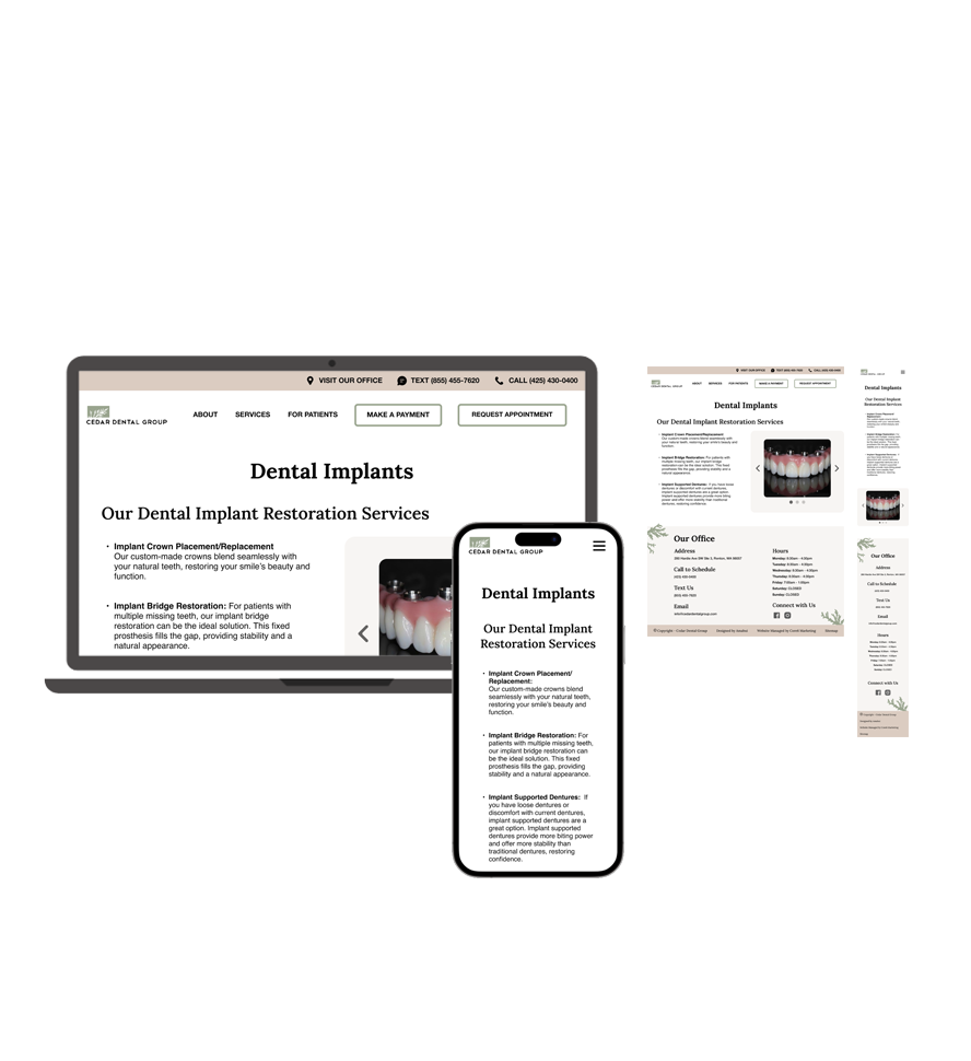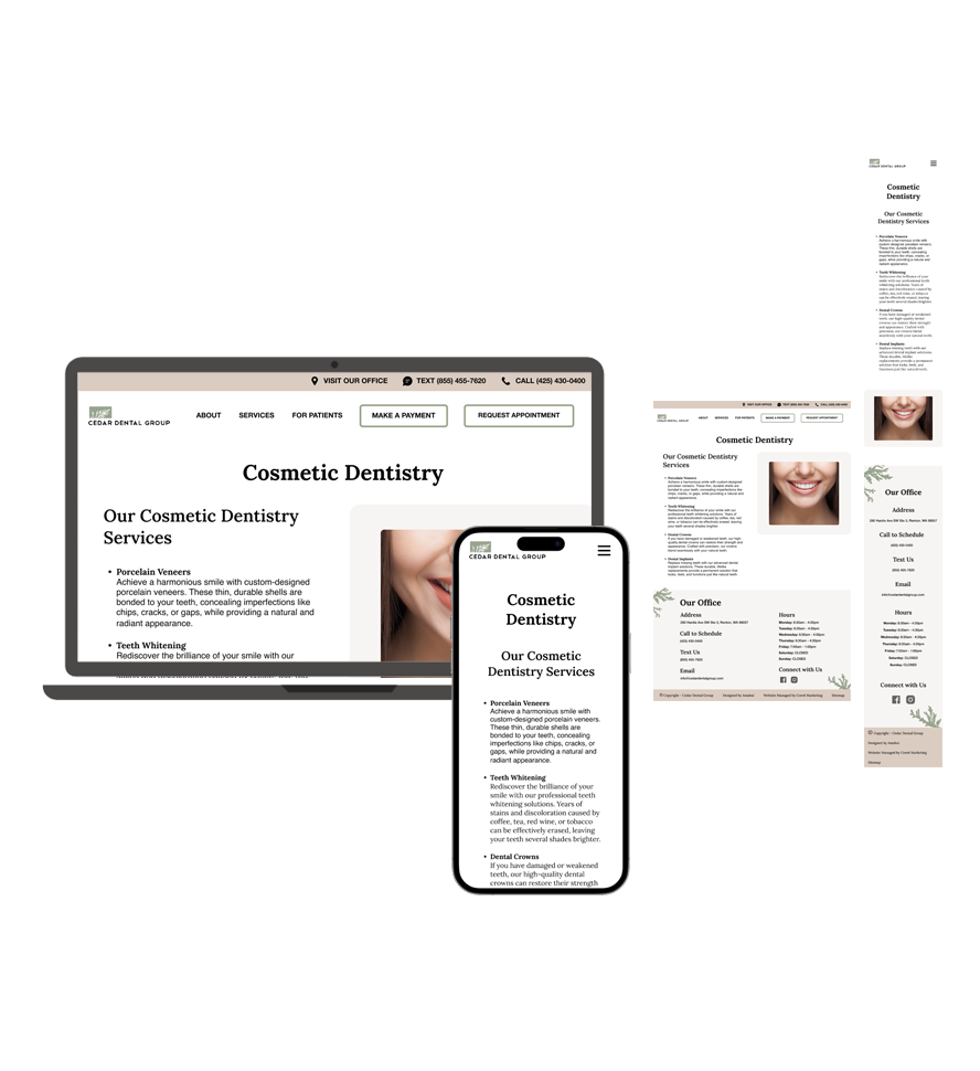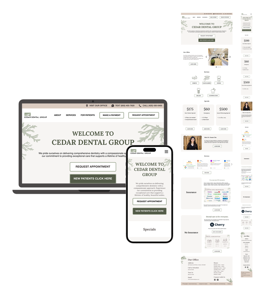 The redesigned website aligned seamlessly with Dr. Susan Chu’s vision and elevated Cedar Dental Group’s brand identity. The modernized design improved usability, strengthened patient trust, and positioned the practice for increased engagement and growth.