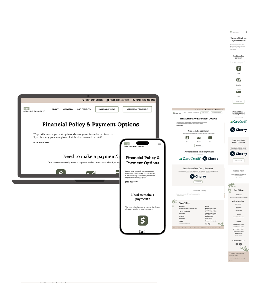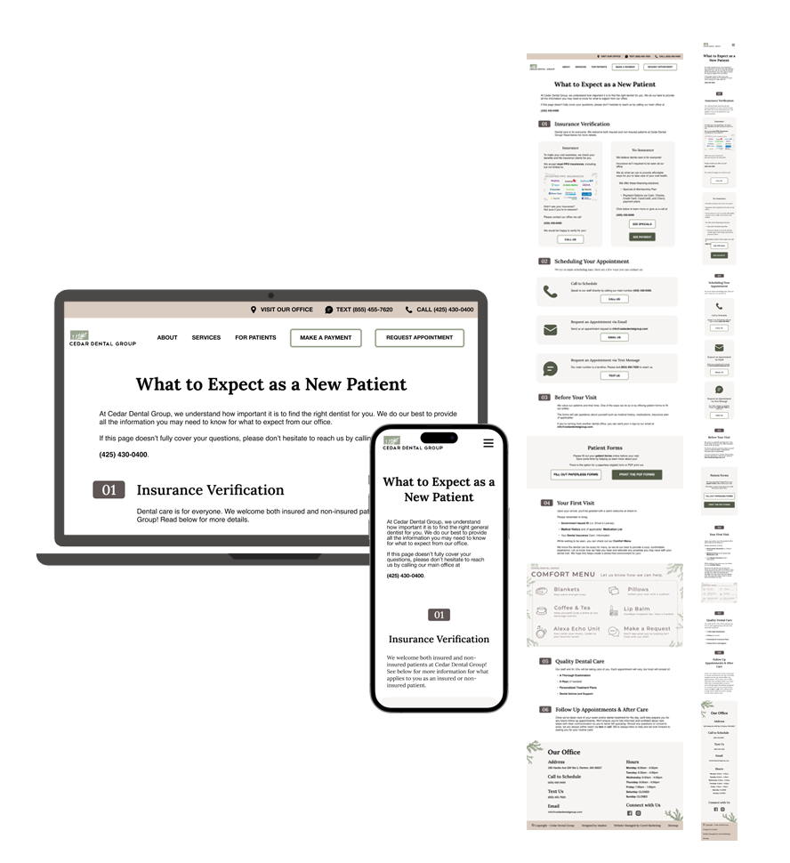 I worked on several pages for Cedar Dental Group's redesign. See below for what I had redesigned.